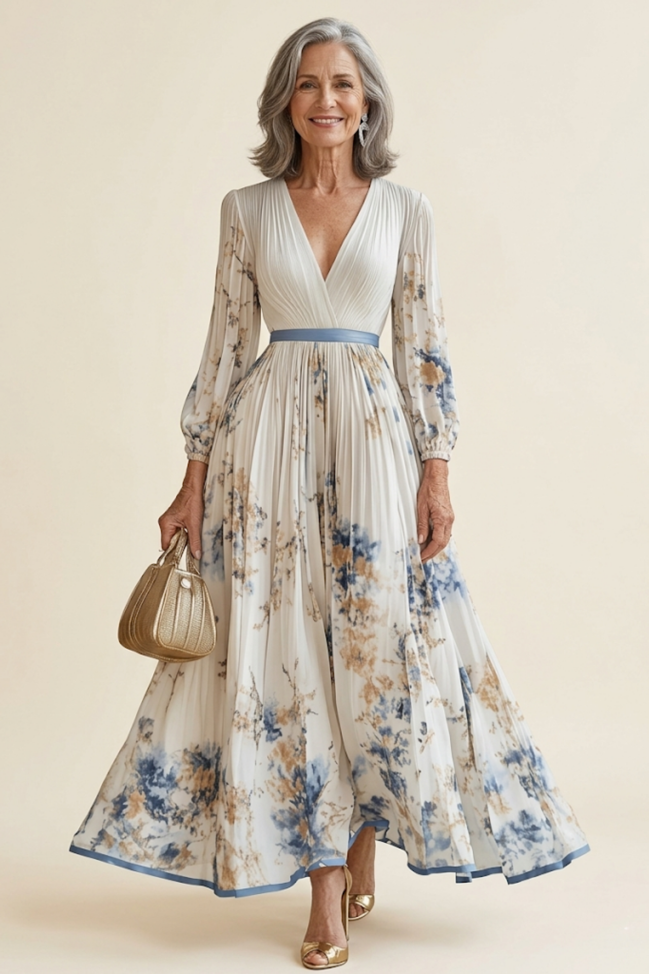 Teresa | White Floral Chiffon Balloon Sleeve Maxi Dress